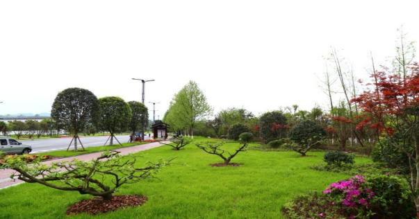 白酒產(chǎn)業(yè)園綠化工程起于成自瀘赤高速黃艤出口高架,道路中央綠化帶以疏林草地為主,將道路兩旁的山林、湖泊等延伸打造,因地制宜,與自然景觀效果有機(jī)結(jié)合,采用“濕山露水”的造園理念,共同營(yíng)造出“三生三世十里桃花”的仙境,凸顯特色酒文化,受到市領(lǐng)導(dǎo)和來(lái)賓的廣泛好評(píng)。
