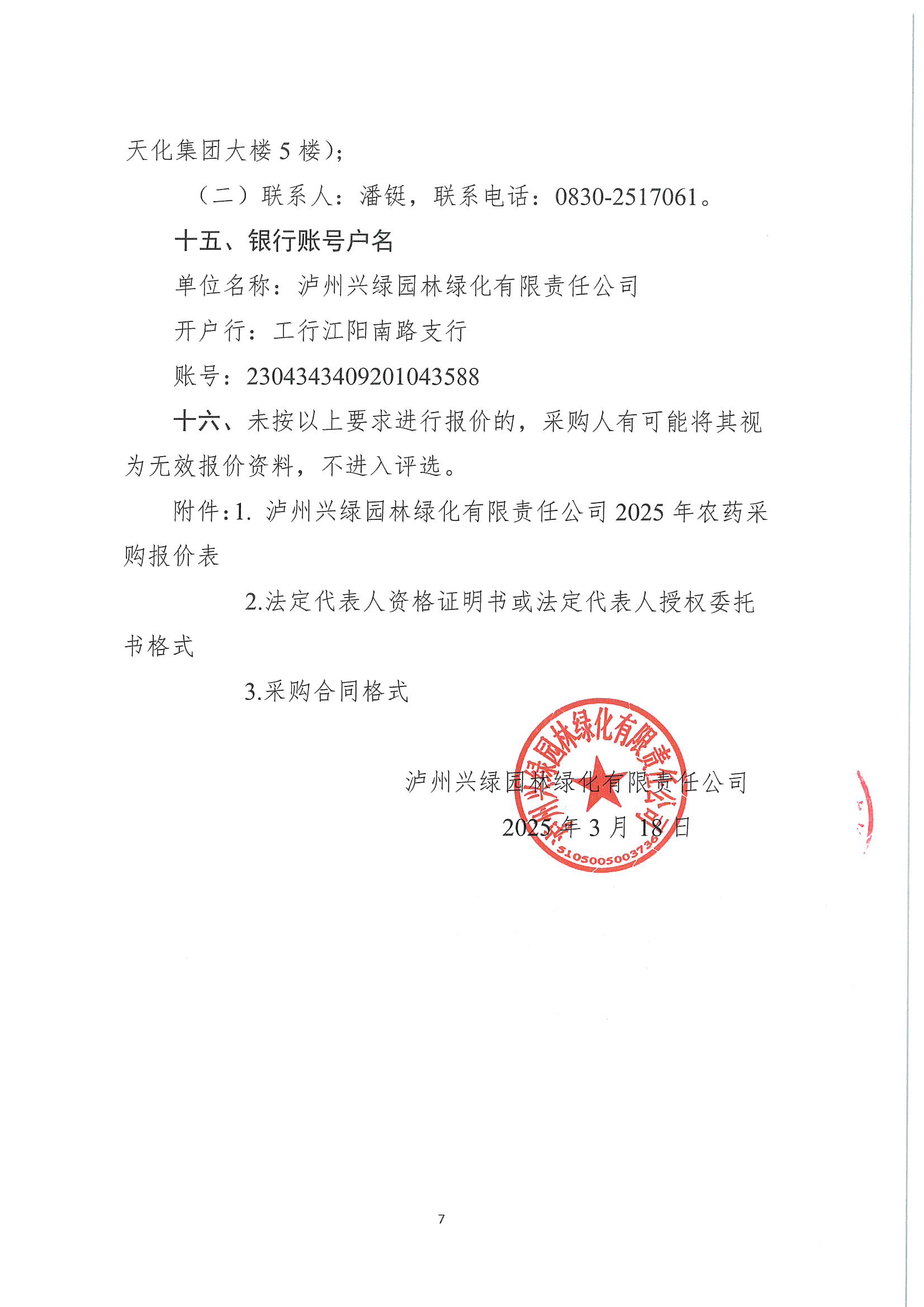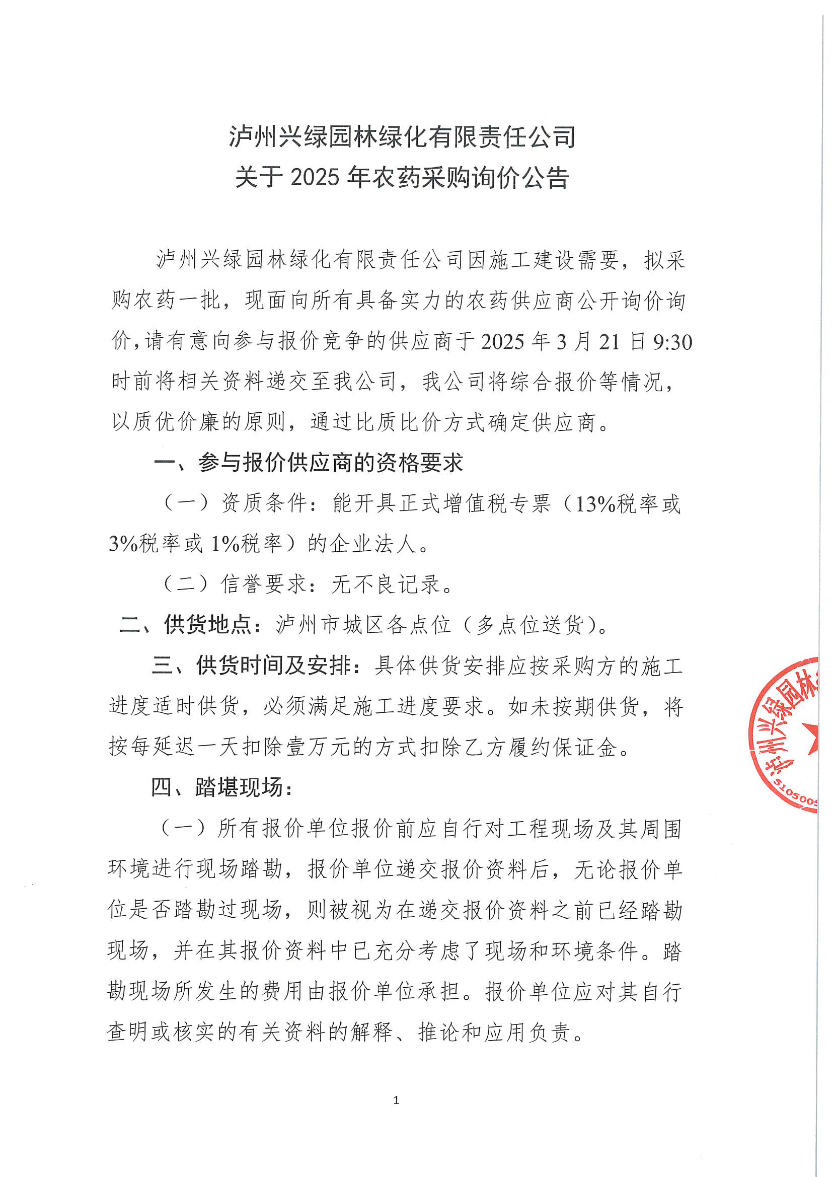 瀘州興綠園林綠化有限責任公司關(guān)于2025年農(nóng)藥采購詢價公告